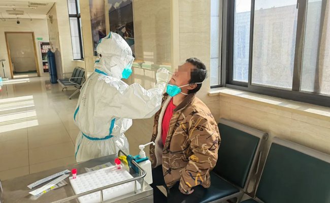 田甜為患者采集核酸。陜西省人民醫(yī)院供圖