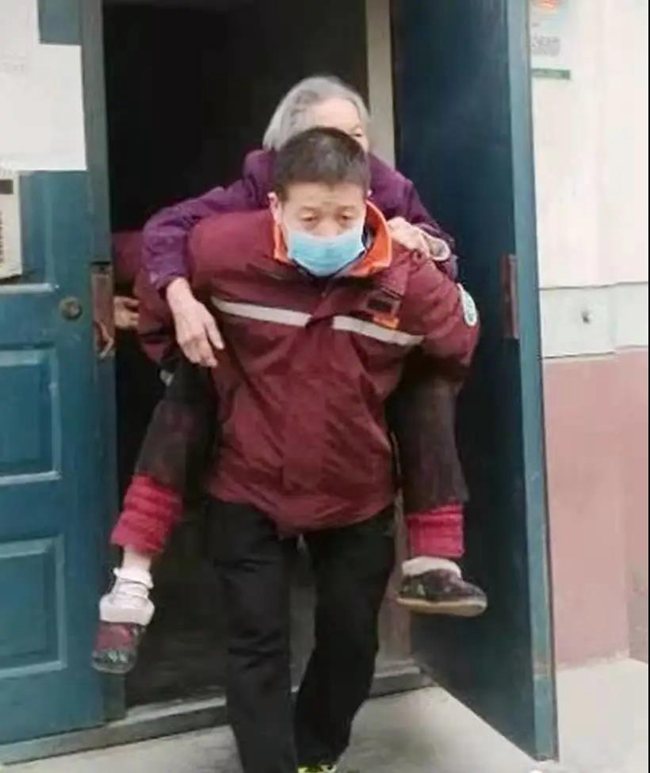 市內(nèi)某小區(qū)一名獨(dú)居老人急需就醫(yī),120急救車到達(dá)后發(fā)現(xiàn)其居住單元老舊,擔(dān)架根本無(wú)法使用,情急之下,司機(jī)楊明背起老人快速將其轉(zhuǎn)入救護(hù)車。