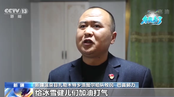 新疆溫泉縣扎勒木特鄉(xiāng)浩圖爾哈隊(duì)牧民 巴音郭力:我們特別激動(dòng),就想用跑馬送行的形式給冰雪健兒們加油打氣,希望他們能為國(guó)爭(zhēng)光,能把我們的心情帶到奧運(yùn)賽場(chǎng)上。