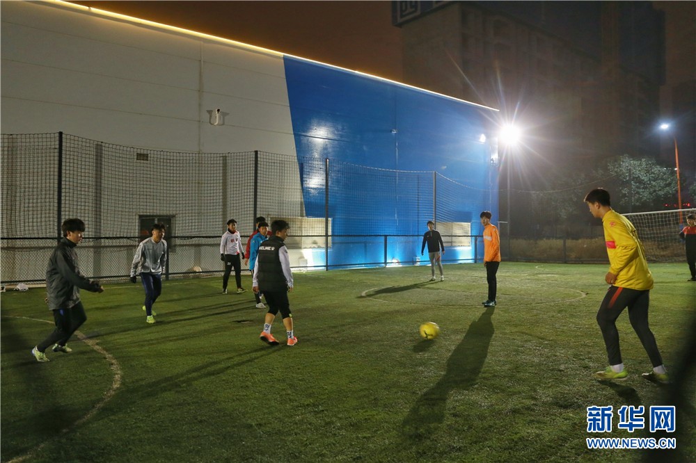 1月25日,在西安市未央?yún)^(qū)一處健身場所,幾名年輕人正在踢足球。新華網(wǎng) 王智超 攝