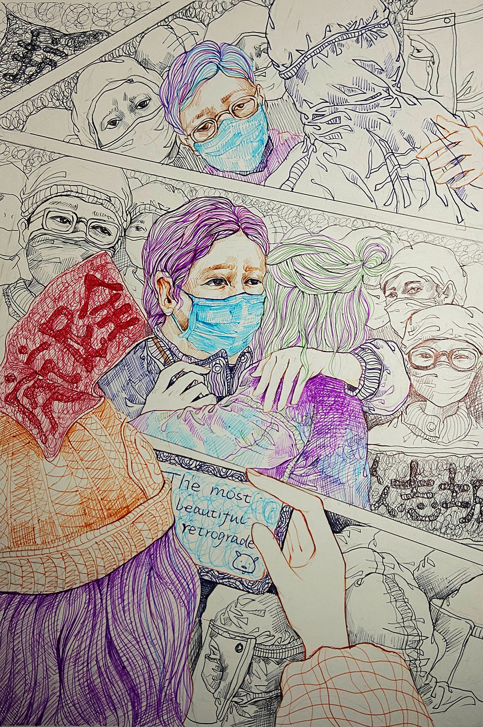 2021年12月,新冠肺炎疫情在西安突然暴發(fā),面對突如其來的疫情和嚴(yán)峻復(fù)雜的防控形勢,在加強落實疫情防控、保障師生健康的同時,西安工程大學(xué)服裝與藝術(shù)設(shè)計學(xué)院積極應(yīng)對,組織全院師生有序、規(guī)范開啟2021年秋季期末課程結(jié)課的線上教學(xué)。任課教師及時調(diào)整結(jié)課作業(yè)主題,充分利用視覺傳達(dá)設(shè)計專業(yè)特點,組織同學(xué)們嚴(yán)謹(jǐn)認(rèn)真、激情飽滿地用畫筆以藝抗疫,致敬最美逆行者!