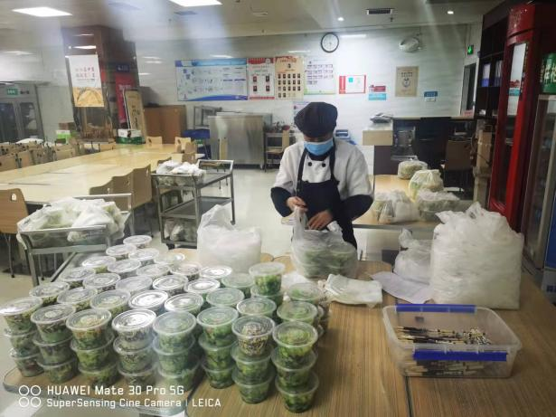 同時,醫(yī)院還成立志愿者送餐服務(wù)隊,為住院患者及陪人提供送餐服務(wù)。餐廳再次完善了送餐流程,明確了餐箱消毒及工作人員防護(hù)要求,讓住院患者享受營養(yǎng)健康又熱乎乎的飯菜。隊員中有行政后勤人員、醫(yī)生、護(hù)士,他們與餐廳密切合作,確保準(zhǔn)時送達(dá)、數(shù)量準(zhǔn)確,為了保證飯菜的溫度,他們加快速度,提高效率,送餐隊員們練就了熟練的推車技術(shù),各個都成了“推車高手”,每一餐一千多份餐食移交完畢,隊員們笑著說“腰都快直不起來了。”但他們沒有一個人叫苦叫累,都說“看到患者吃著熱乎的飯菜,我們覺得每天都是值得的!能為患者服務(wù)好,便是我們對西安抗疫做的最大貢獻(xiàn)。”