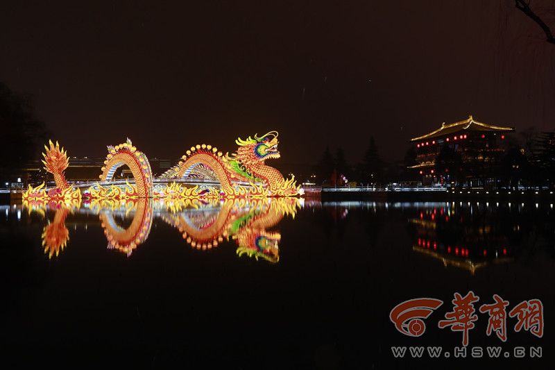 西安城墻永寧門南廣場上,“龍飛鳳舞耀長安”和“祥和新春”燈組交織出一幅逐夢山河萬里的盛世畫卷,共祝祖國繁榮昌盛,續(xù)寫新春華章。
