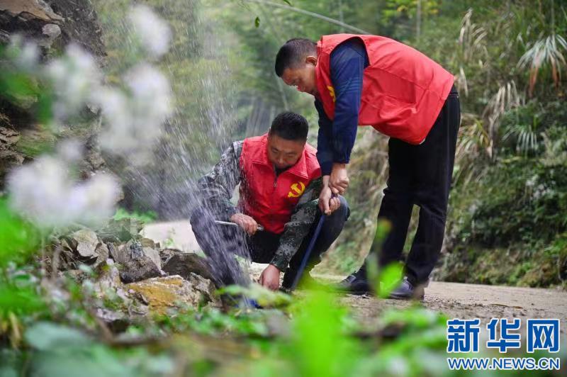 為保障春耕春灌,江西省宜春市袁州區(qū)新坊鎮(zhèn)組織志愿者對用水管道進行重新檢修。新華網(wǎng)發(fā) 張文 攝
