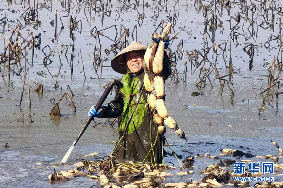 “現(xiàn)在正值中熟品種蓮藕的采摘期,平時會有40多人下田采挖。每年的采收最高峰在11月,可以達到80人。”洪曉俊介紹,早熟蓮藕在每年的6月中旬就開始采收,晚熟蓮藕的采收時間可以從11月延續(xù)到第二年4月份。