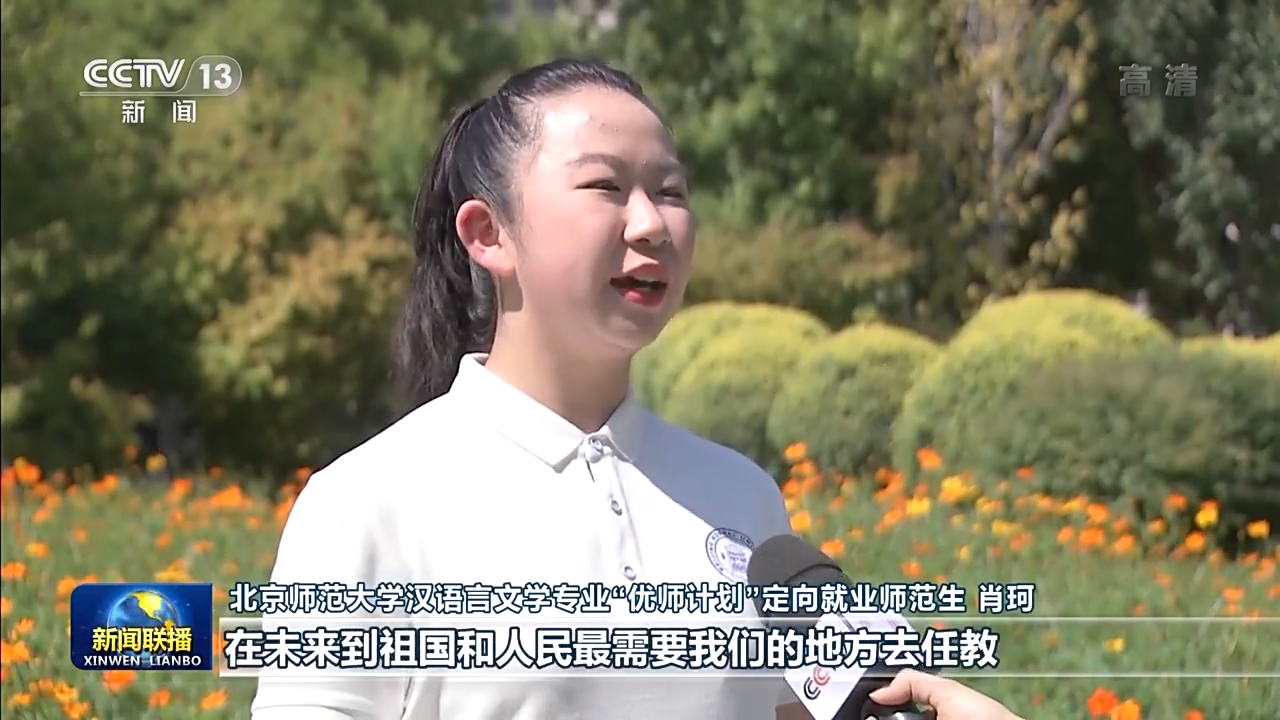 北京師范大學(xué)漢語言文學(xué)專業(yè)“優(yōu)師計(jì)劃”定向就業(yè)師范生 肖珂:總書記勉勵(lì)我們?cè)鲩L(zhǎng)傳道授業(yè)解惑本領(lǐng),在未來到祖國和人民最需要我們的地方去任教。我定不負(fù)囑托,努力學(xué)習(xí),在畢業(yè)后回到我的家鄉(xiāng)。