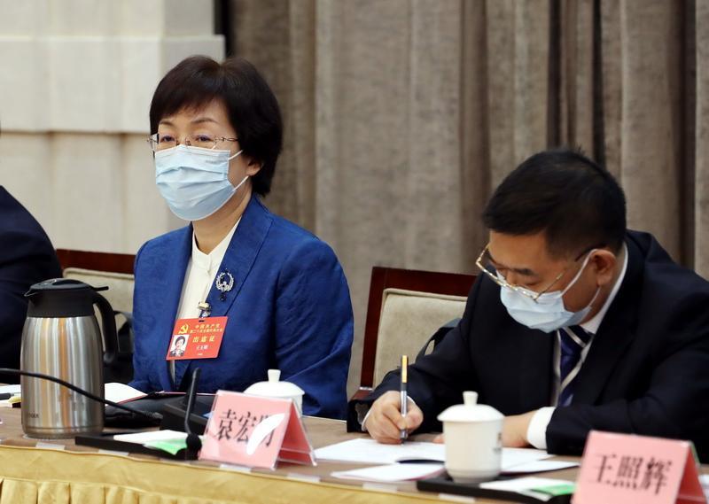 按照中國共產黨第二十次全國代表大會統(tǒng)一安排,陜西省代表團10月15日在住地召開全體會議。左一為路生梅代表。