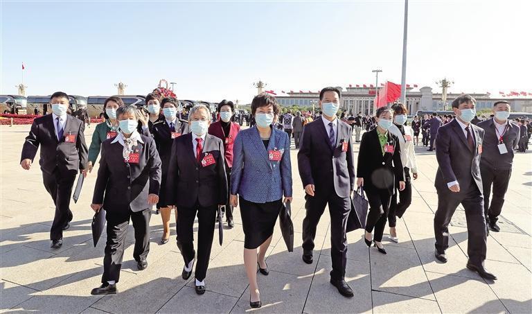 10月16日上午,中國共產(chǎn)黨第二十次全國代表大會在北京隆重開幕。出席黨的二十大的陜西省代表滿懷豪情,步入人民大會堂,參加開幕會。 記者 母家亮攝