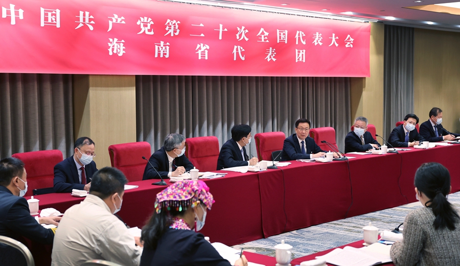 ?。ǘ笫軝?quán)發(fā)布)韓正在參加黨的二十大海南省代表團討論時強調(diào) 深刻領(lǐng)悟“兩個確立”的決定性意義 堅定不移推進中華民族偉大復(fù)興歷史進程