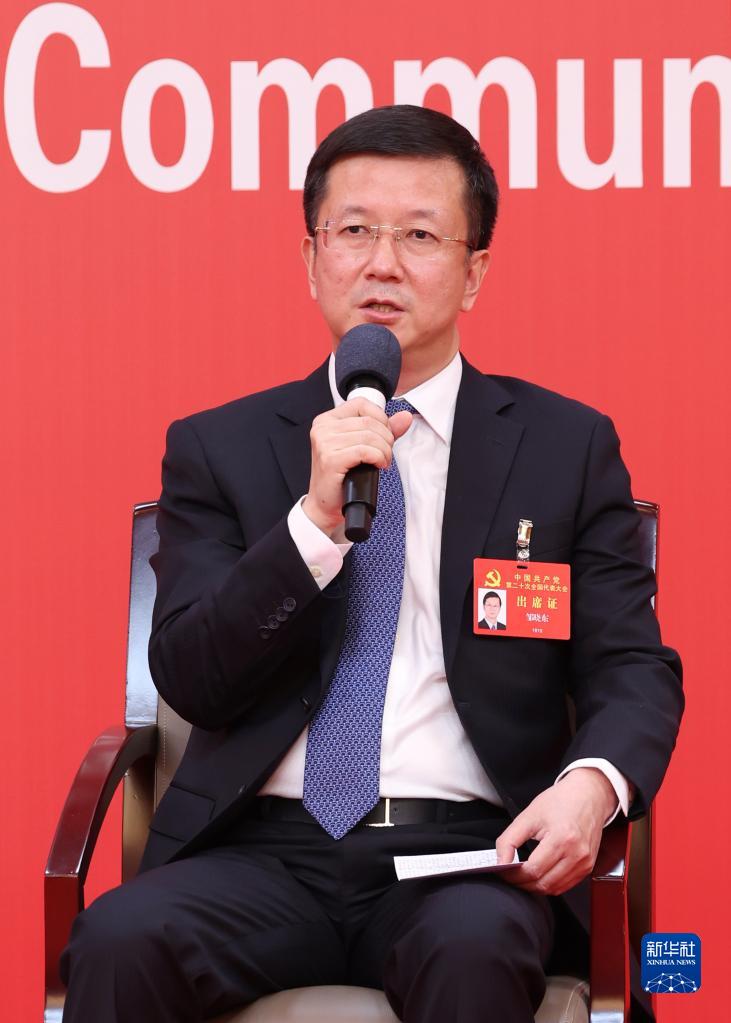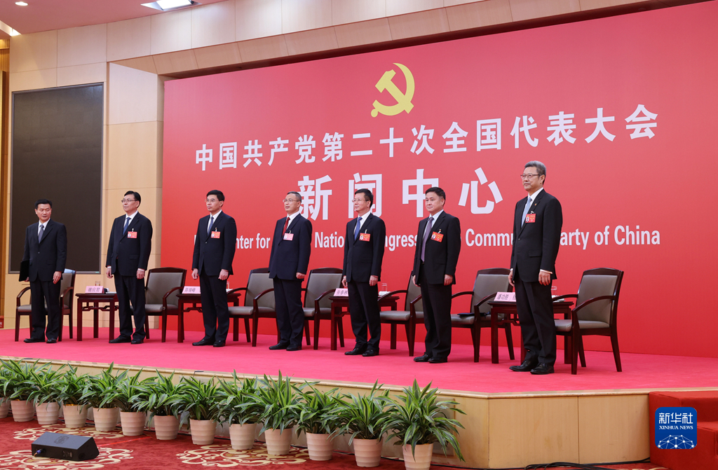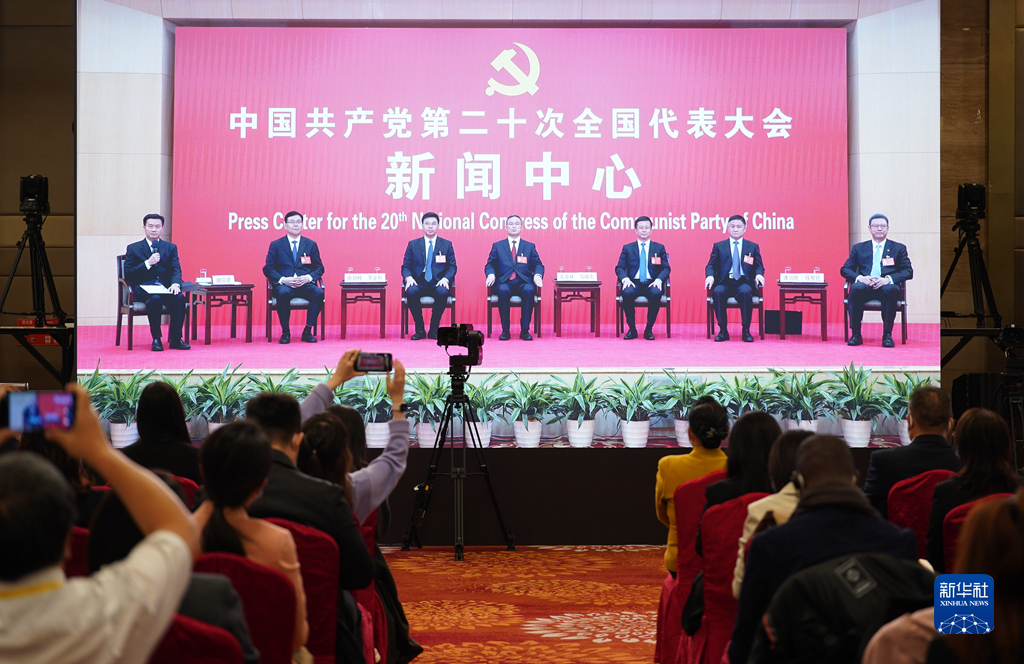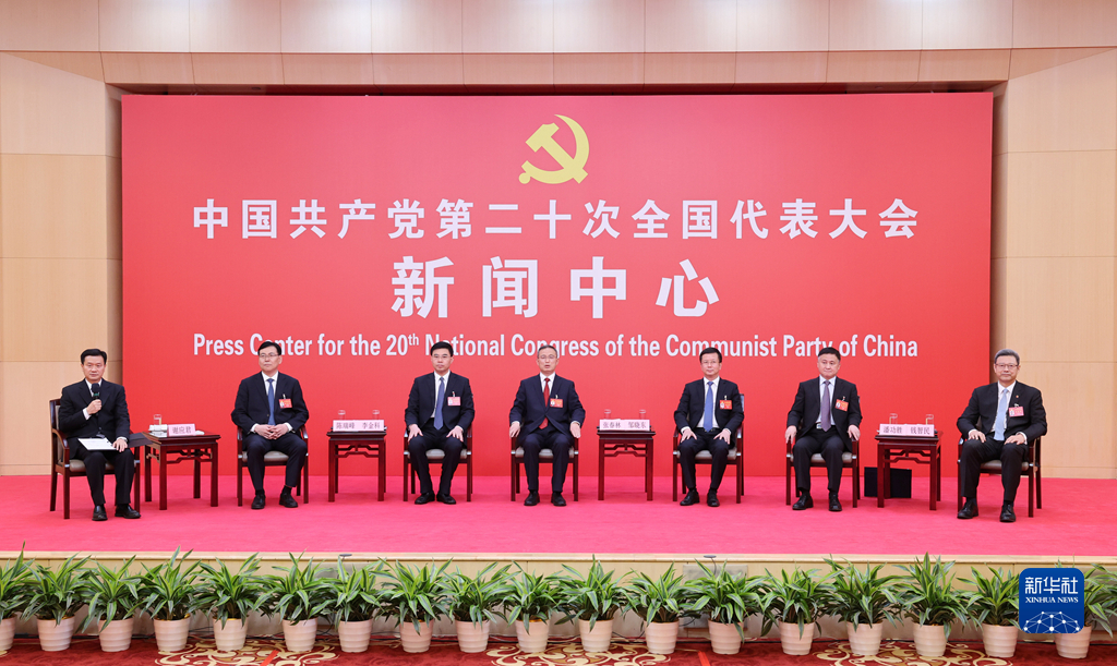 10月20日,中國共產(chǎn)黨第二十次全國代表大會(huì)新聞中心舉行集體采訪。青海、寧夏、新疆、中央和國家機(jī)關(guān)、中央金融系統(tǒng)、中央企業(yè)系統(tǒng)(在京)代表團(tuán)新聞發(fā)言人出席,介紹代表團(tuán)學(xué)習(xí)討論二十大報(bào)告情況,并回答記者提問。新華社記者 陳建力 攝