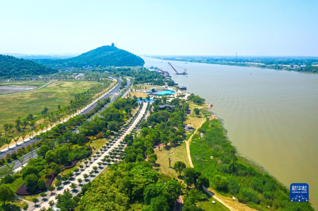 安徽省馬鞍山市長江岸線景觀帶(2022年5月17日攝,無人機照片)。新華社發(fā)