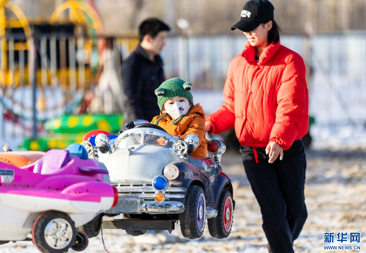 12月7日,小朋友在呼和浩特市玉泉區(qū)大庫倫村“冰雪大世界”內(nèi)體驗旋轉(zhuǎn)汽車項目。新華網(wǎng)發(fā)(丁根厚 攝)